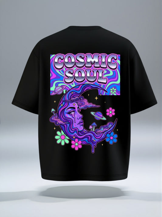 Cosmic Soul Psychedelic Moon Oversized Streetwear T-Shirt