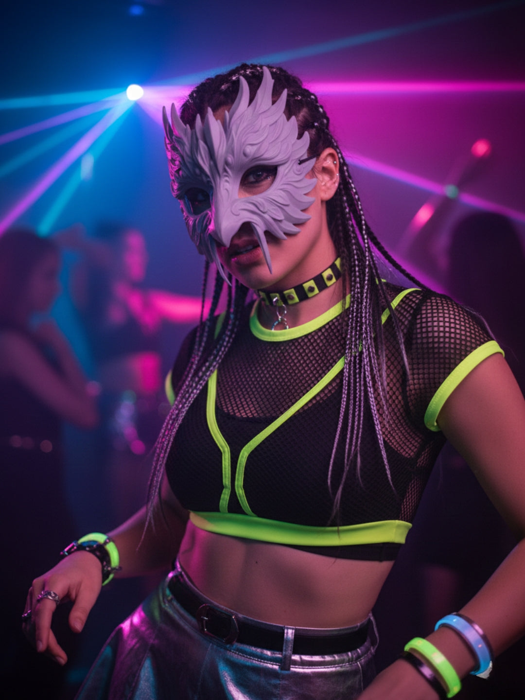 This is a statement mask born at the intersection of digital craftsmanship and modern couture. Sculpted through high-precision 3D printing, it features a dramatic feathered architecture and bold fang-like contours, creating an expressive, avant-garde silhouette suited for festivals, nightlife,fashion-forward styling.