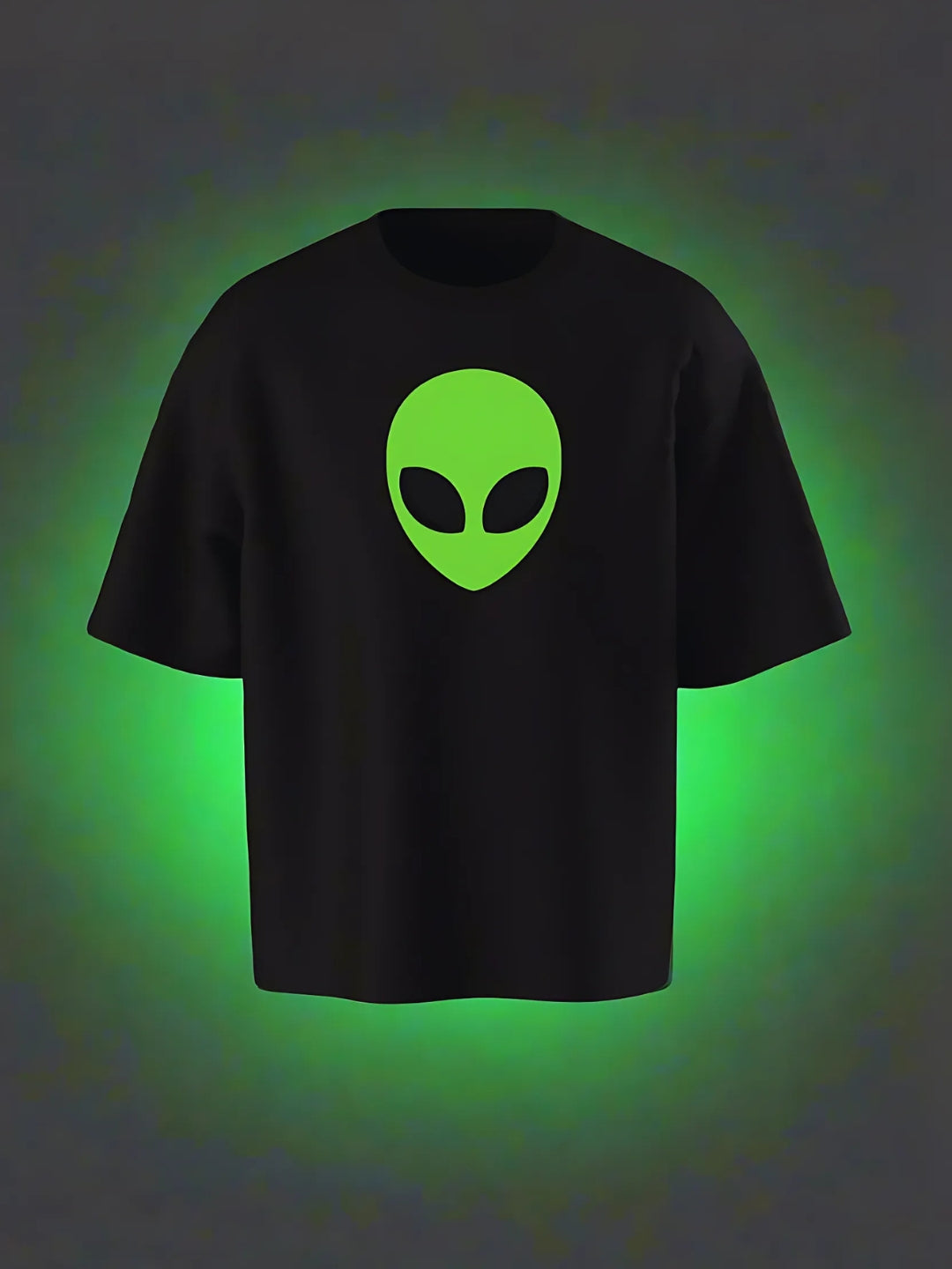 This unisex classic oversized T-shirt features a relaxed, oversized fit made from premium cotton for all-day comfort. The bold alien head print glows under UV light—perfect for festivals, parties, or making a statement in any galaxy.