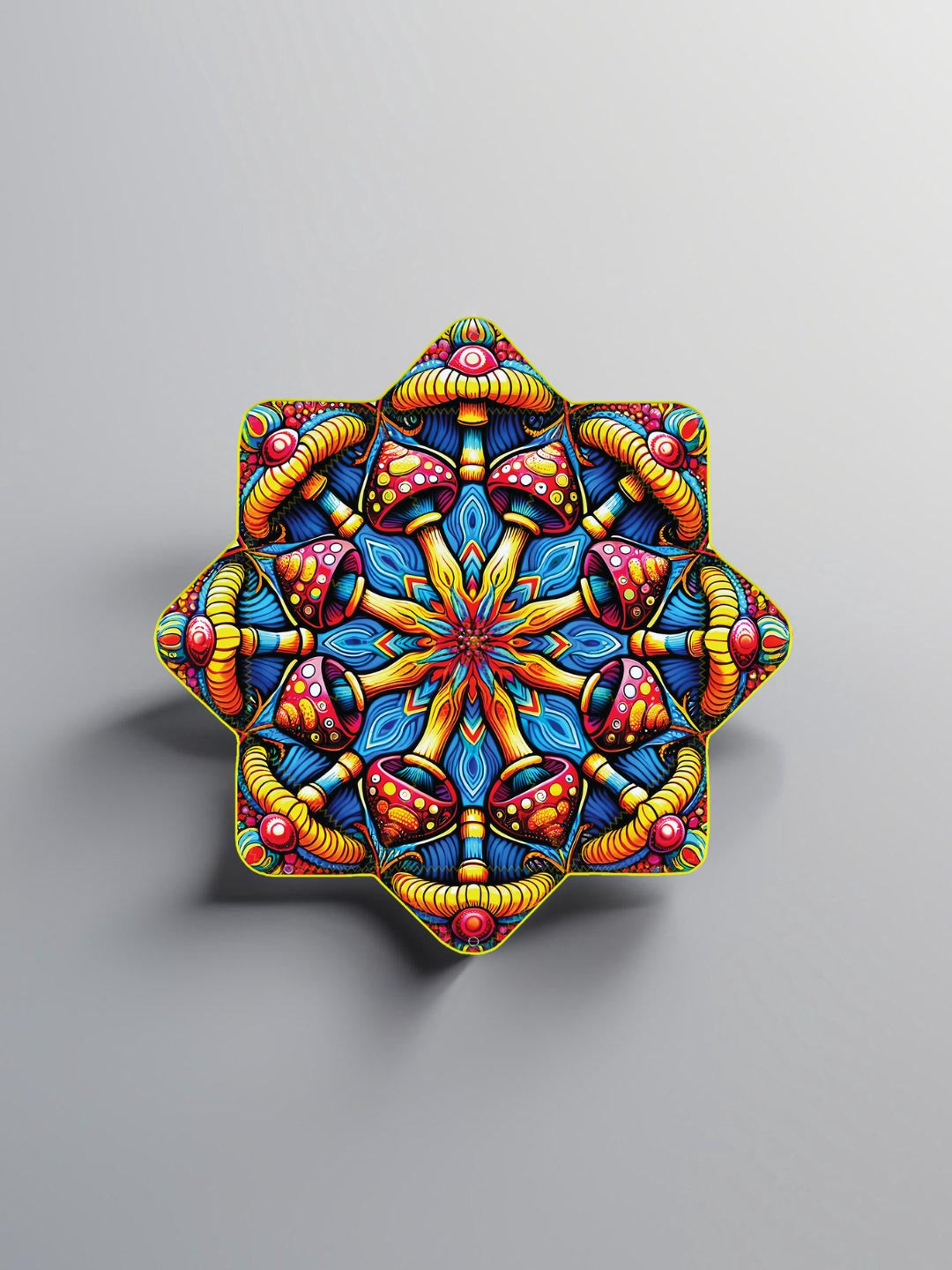 Seamless Fungi patterns design with UV reactive back and curved edges surrounded by fluorescent orange piping.