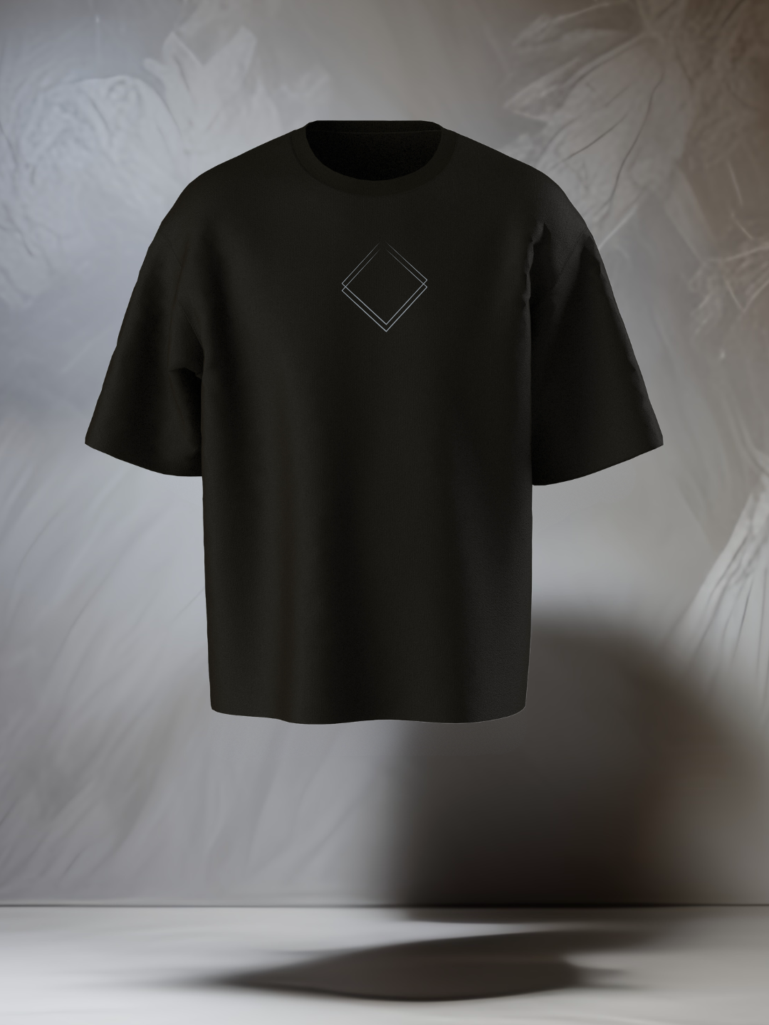 Astral Nexus Unisex Oversized Classic T-Shirt, crafted from premium 240GSM cotton for a luxurious feel. This unisex piece showcases a minimalist geometric design on the front, while the back reveals an intricate abstract pattern, adding a touch of mystique to your wardrobe.