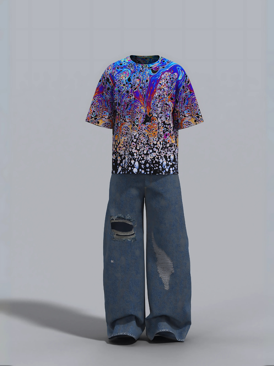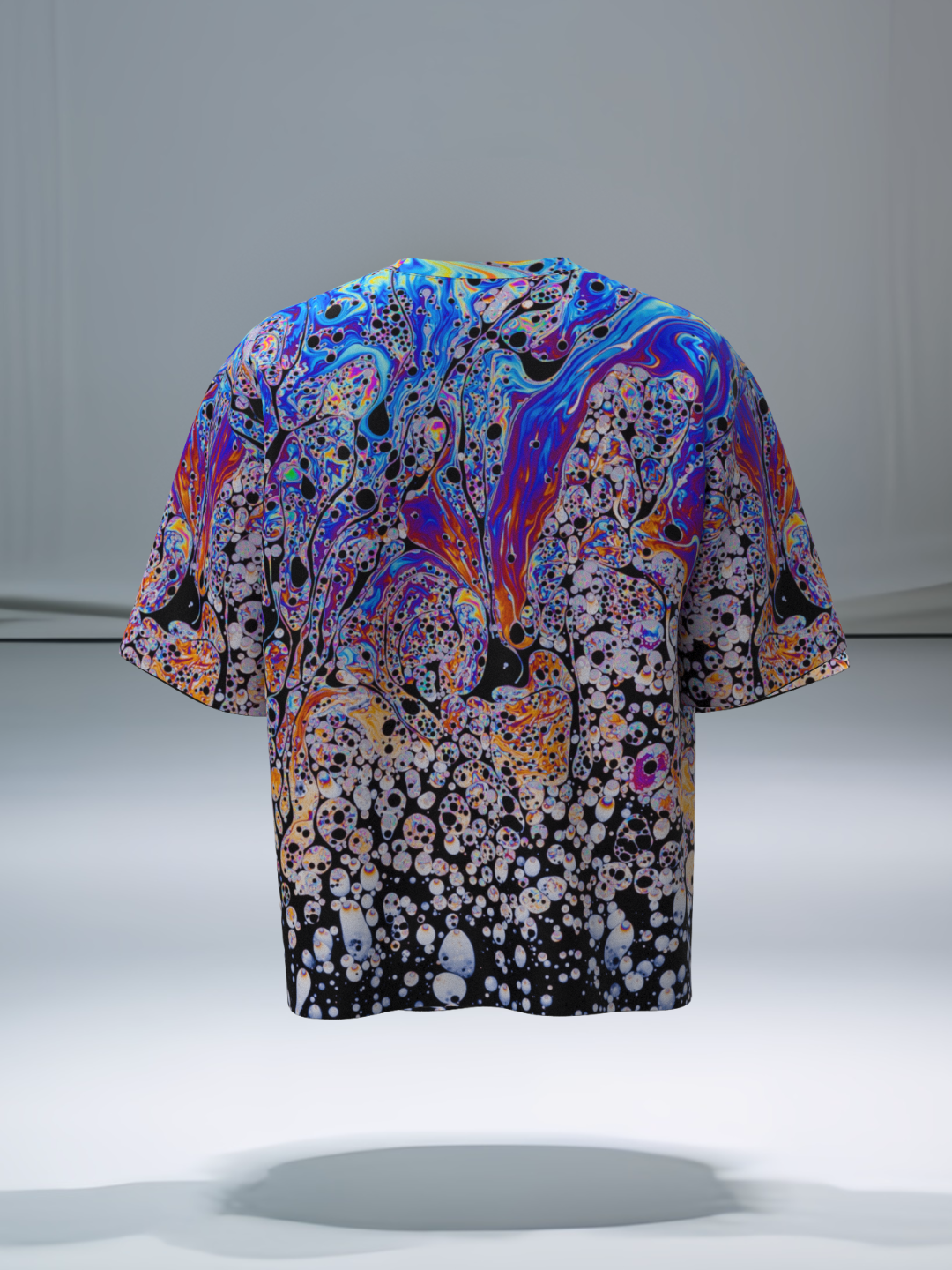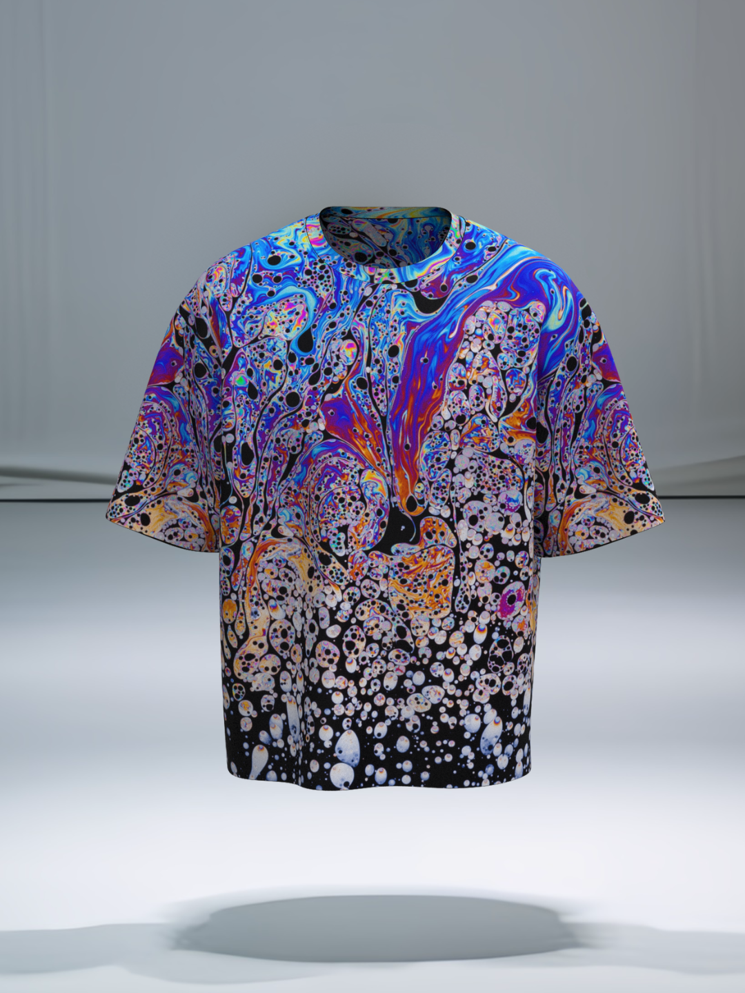 Explore into a swirl of vibrant hues with the Chromatic Drift tee. Its bold, fluid design and oversized fit make it a statement piece for any vibe