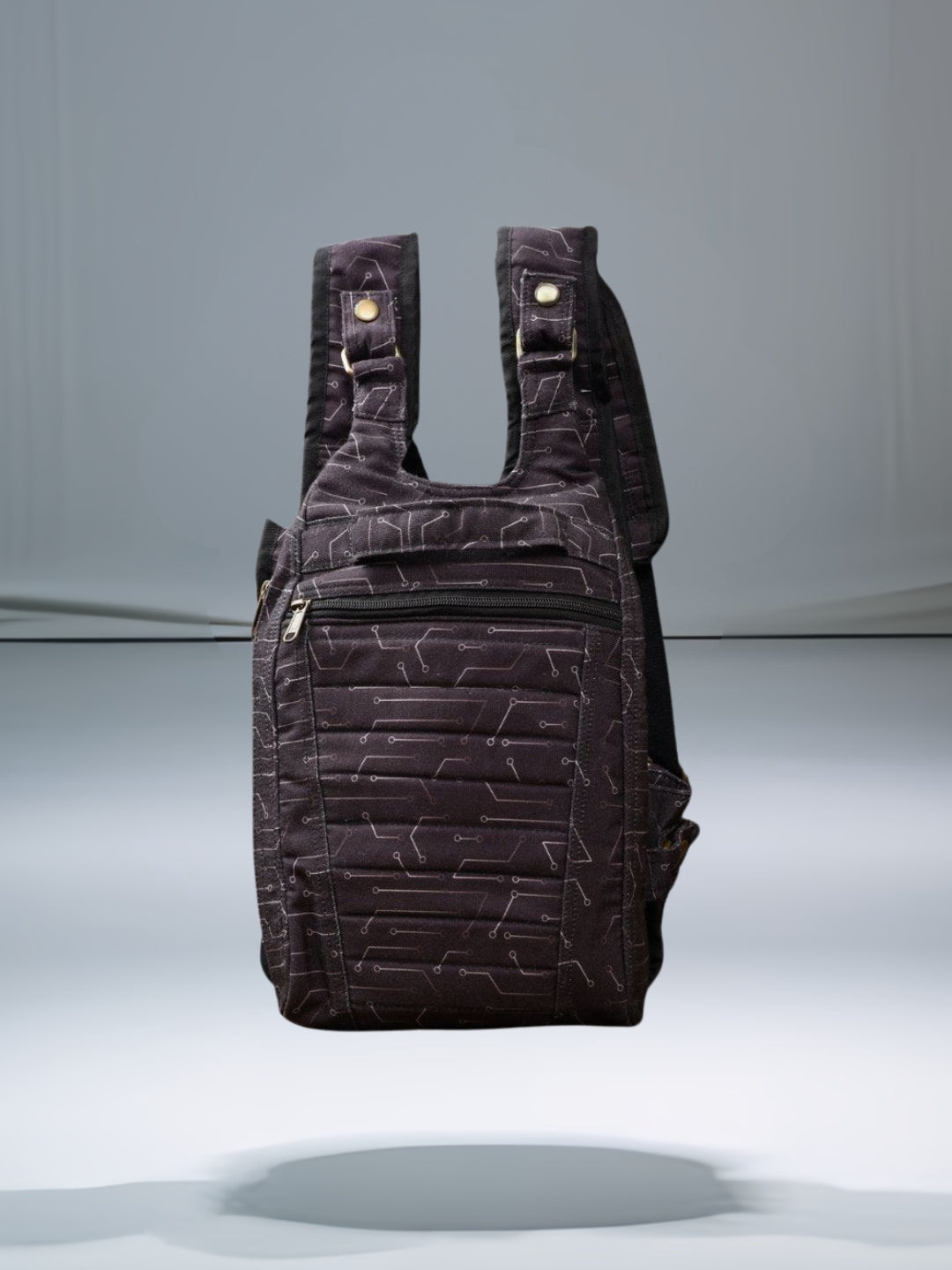 crafted from durable canvas with a Cipher circuit-inspired pattern. This sleek and functional bag offers three spacious compartments, providing ample storage to keep your belongings safe and organized on the go. Designed for secure and hassle-free carrying, it features adjustable straps and a modern aesthetic that’s perfect for commuting, travel, or everyday adventures.