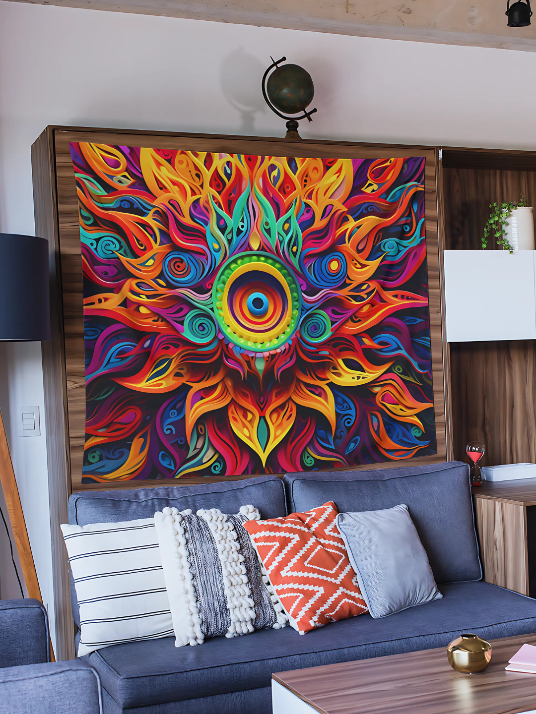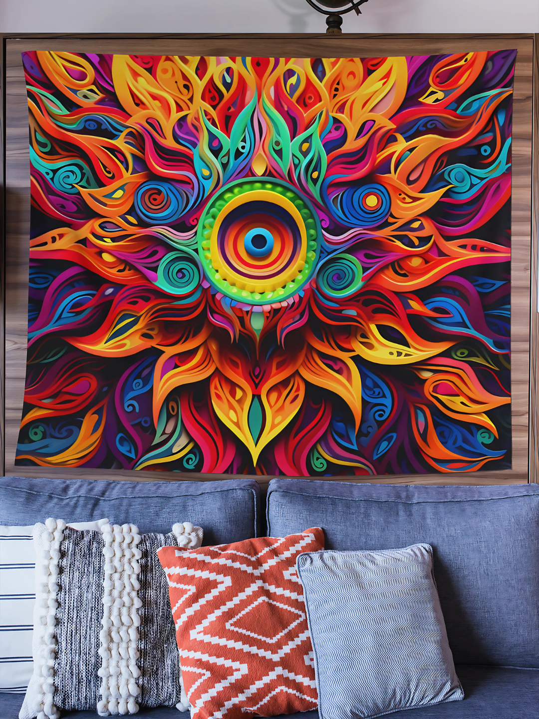 The Dream Wave Tapestry ignites your space with flowing patterns and fiery bursts of color. This Art piece radiates energy, creating a bold and vibrant atmosphere perfect for any room or festival setup.
