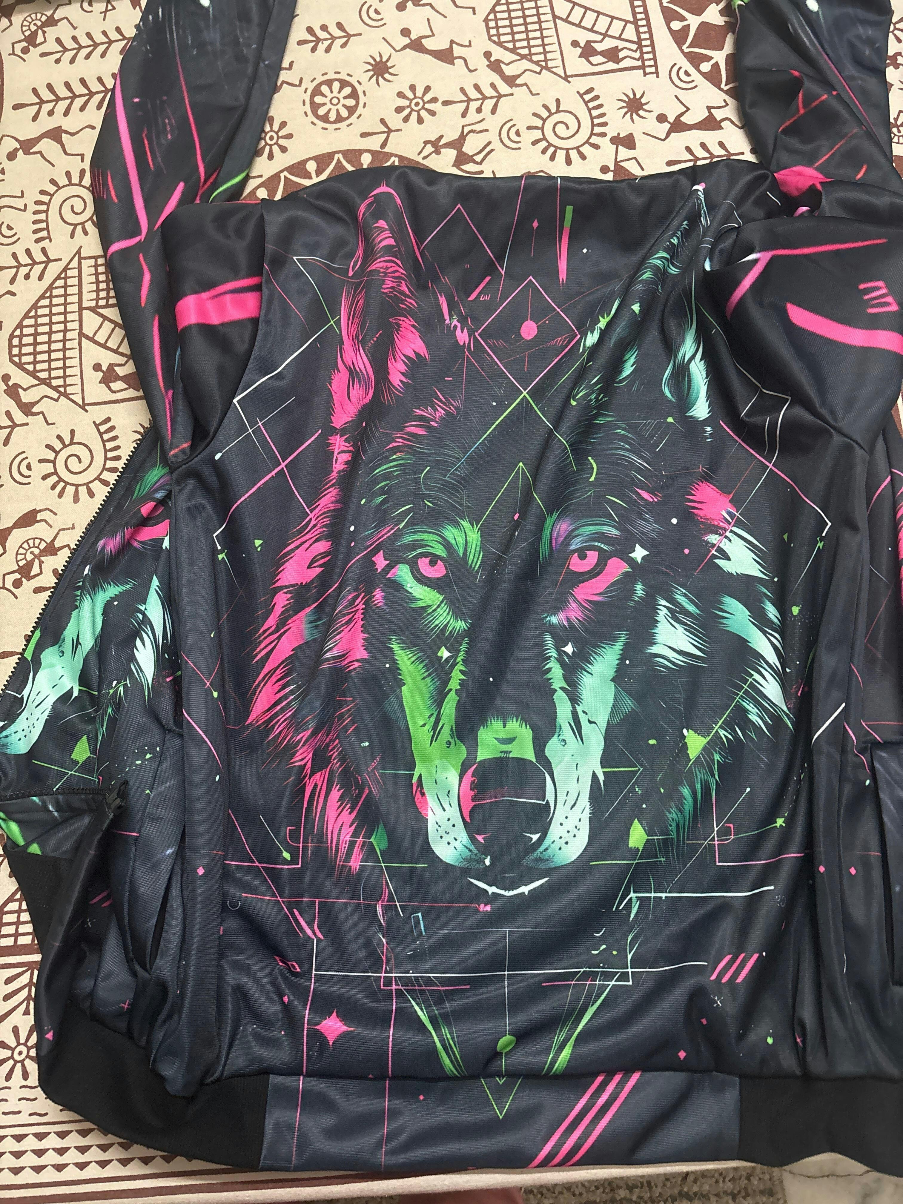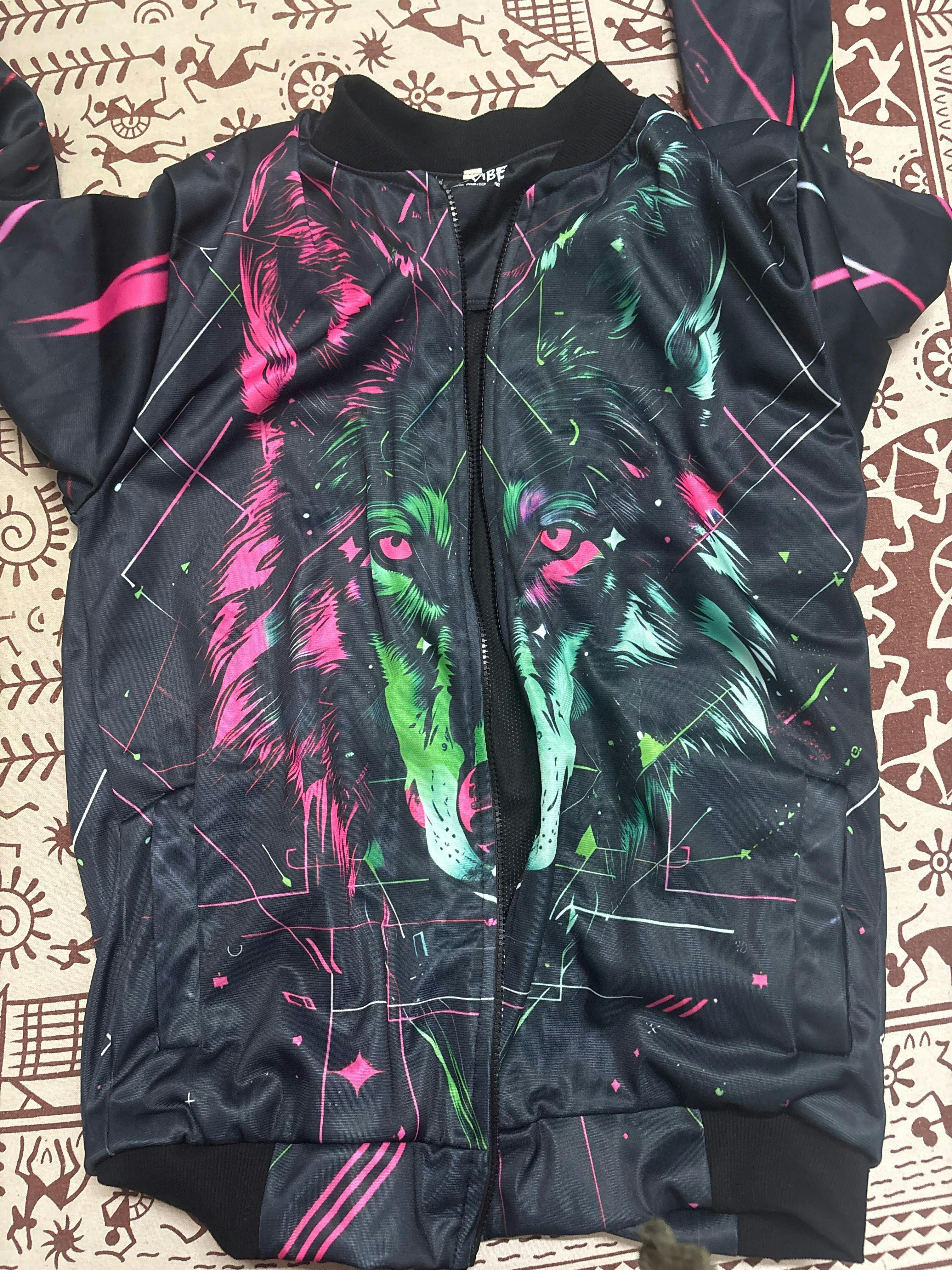Designed for bold souls, this unisex jacket features a neon wolf print that glows with fearless style. Crafted for comfort and durability, it’s the perfect outer layer for those who move with their own rhythm.
