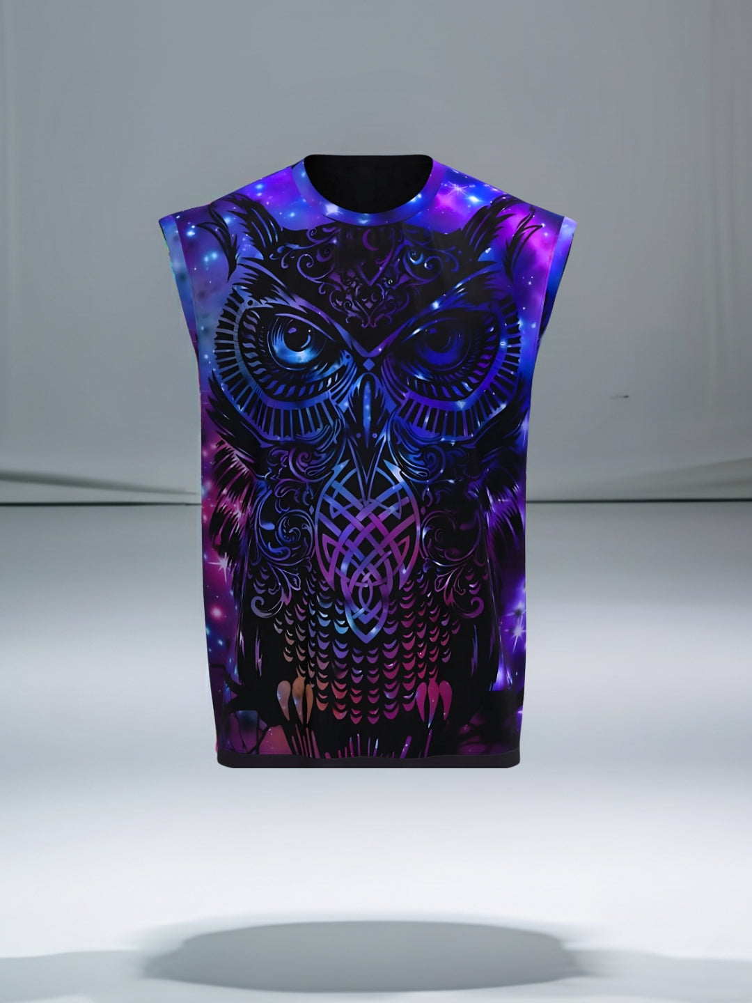Featuring a vibrant cosmic owl design blended with galaxy-inspired colors, this sleeveless vest is perfect for festival wear, streetwear, or casual fashion. Made with premium digital UV printing, the artwork stays vibrant and sharp.