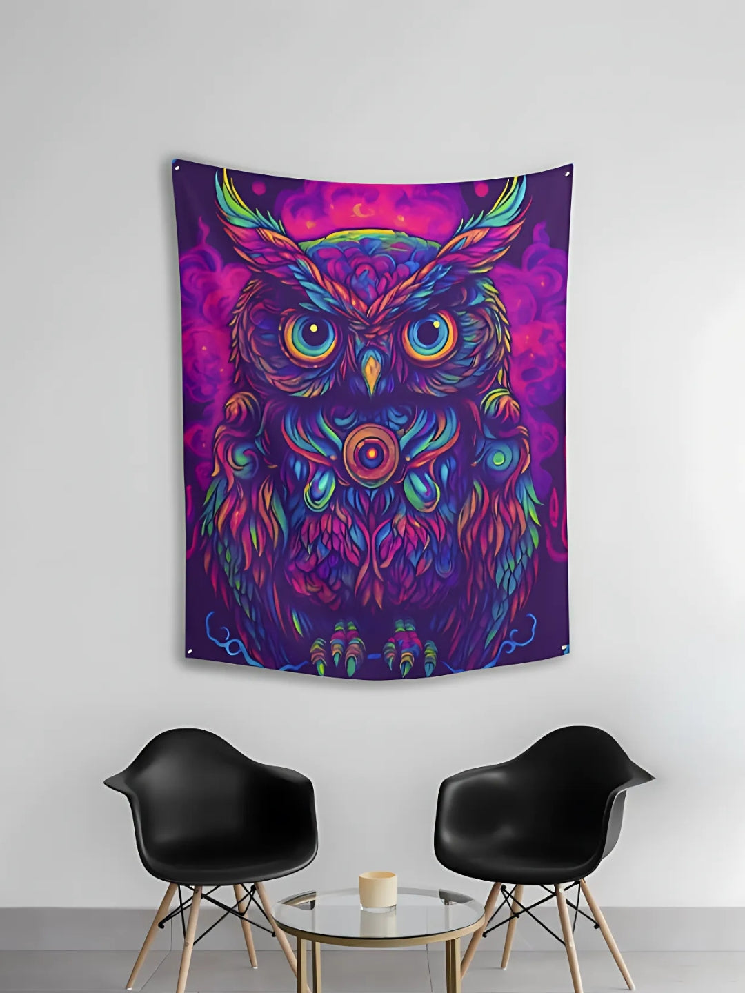 Bold, neon-colored owl design with intricate details and vibrant gradients, bringing a striking mix of mystique and modern artistry to any room.