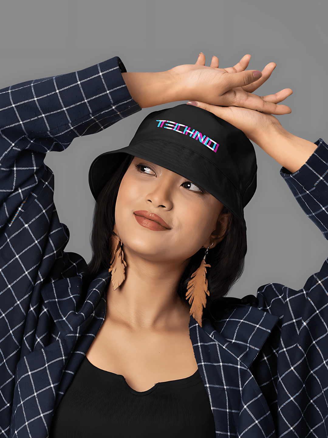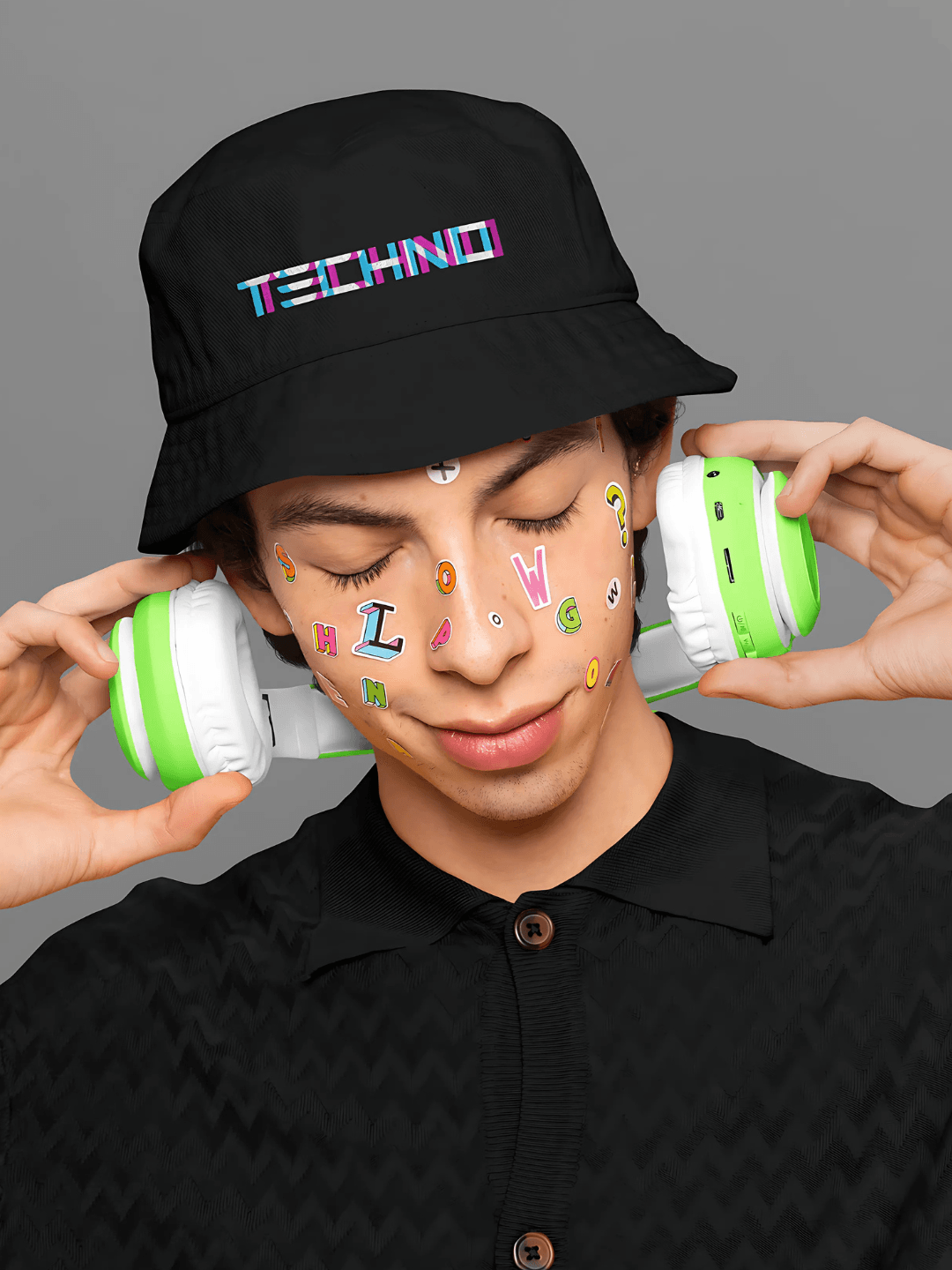 style with the Neo Techno Bucket Hat. Designed with a bold "TECHNO" logo in glitch-inspired neon colors, this unisex hat brings a vibrant, urban edge to your look. Perfect for music lovers, festival-goers, and those who live for the nightlife,
