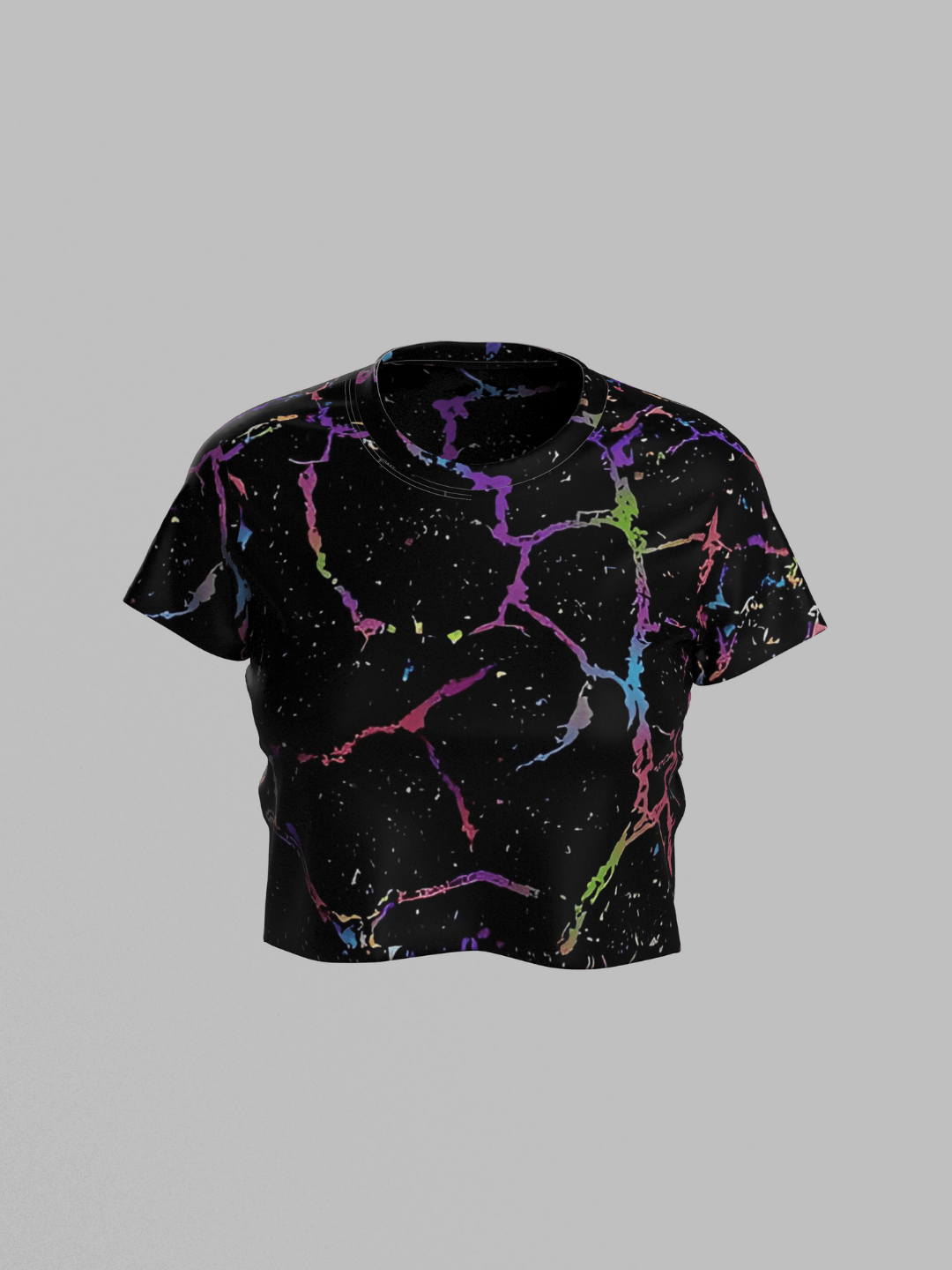 a vibrant matching combo featuring a sleek crop top and high-waist leggings. Designed for comfort and confidence, the splatter-style neon pattern brings electric energy to your vibe, whether you're hitting a rave, lounging, or lighting up the night.