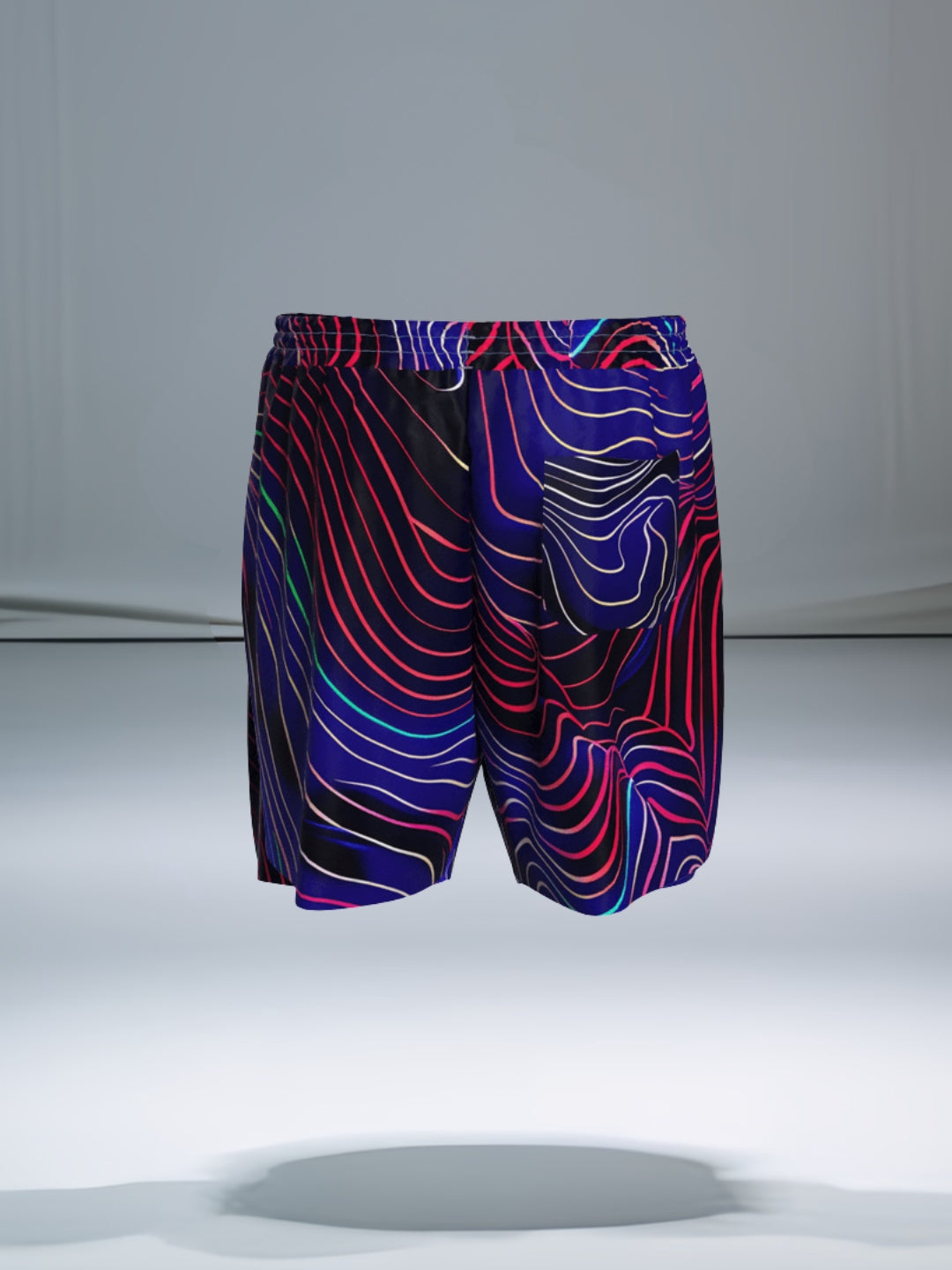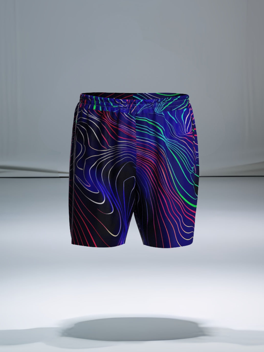 ย feature an intricate design of flowing neon lines in vibrant shades of blue, red, green, and purple, these shorts are made from high-quality, fabric that ensures maximum comfort and breathability. The elastic waistband provides a secure fit, making them ideal for workouts, beach trips, or simply lounging in style.