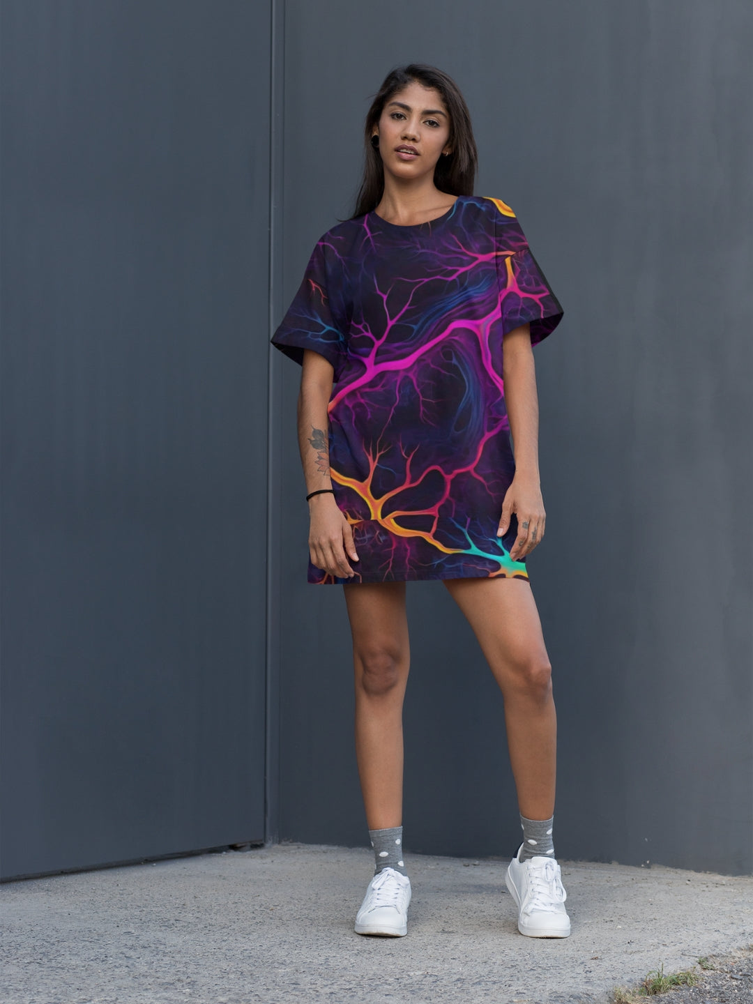 featuring a bold all-over electric pattern that brings energy to your everyday look. Made from soft, breathable fabric with a relaxed fit, this statement dress is perfect for casual outings, streetwear styling, or a night out. Pair it with boots or sneakers for a versatile fashion-forward outfit.