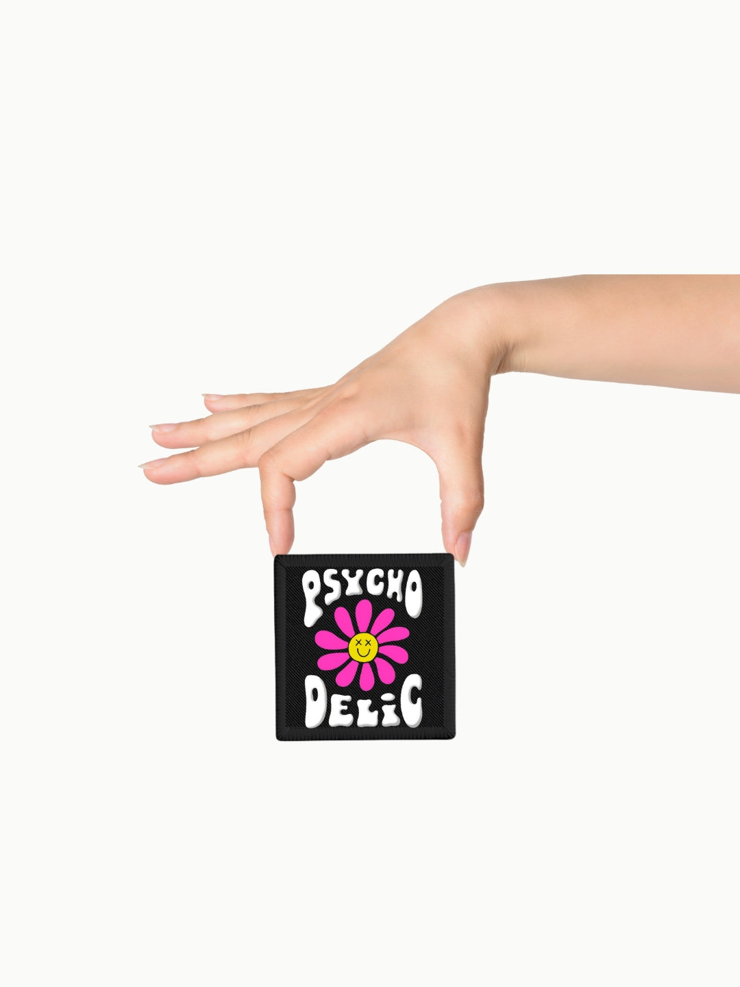 Featuring bold, wavy lettering and a pink flower with a mischievous smiley, it's perfect for customizing jackets, backpacks, or hats. Iron-on or sew it for a lasting vibe!