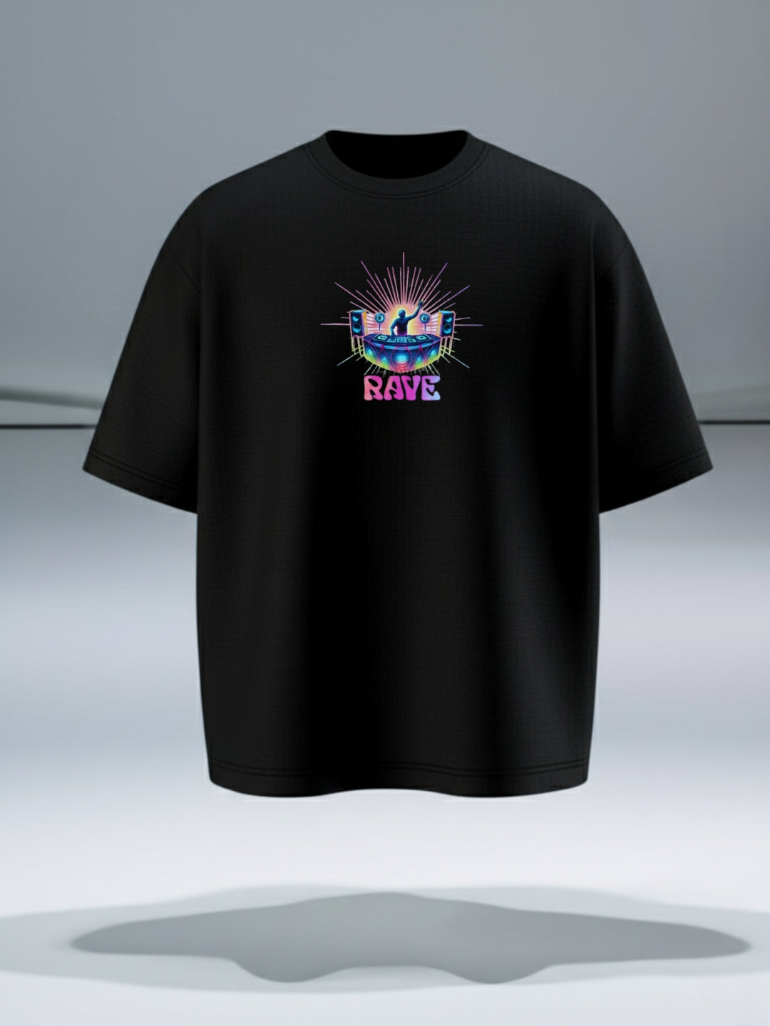 Turn up the vibe with the Rave Till Sunrise Oversized Tee, designed for all-night energy and everyday street style. Featuring a vibrant psychedelic DJ graphic and a relaxed unisex oversized fit, this classic black t-shirt blends comfort with bold festival aesthetics. Made for music lovers, party nights, and casual wear, it’s the perfect statement tee for modern streetwear collections.