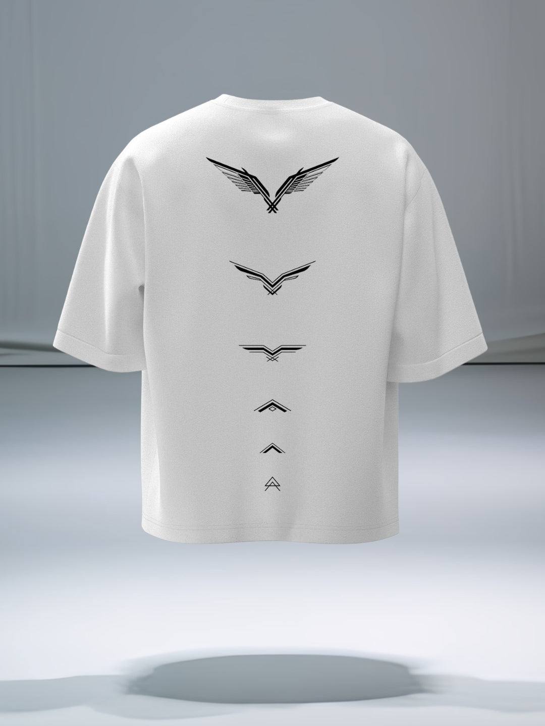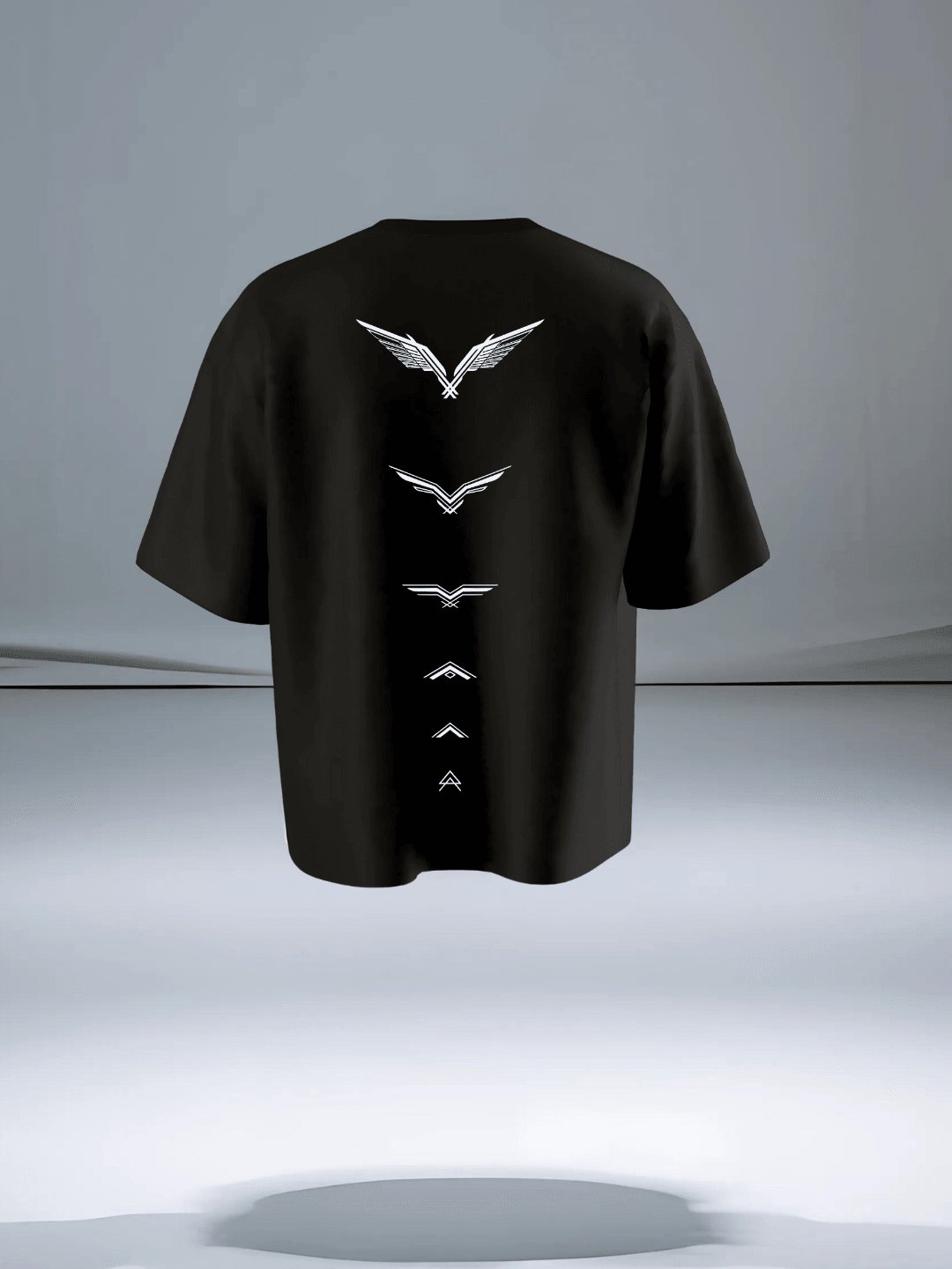The Rising Wings Classic Oversized Unisex T-Shirt. Showcasing bold falcon wings down the back and a minimalist LUMEVIBE logo on the front, this tee is all about power and clean street style. Designed with a relaxed fit and premium fabric, it's your go-to for comfort and confidence. Available in classic black and white—perfect for everyday wear.