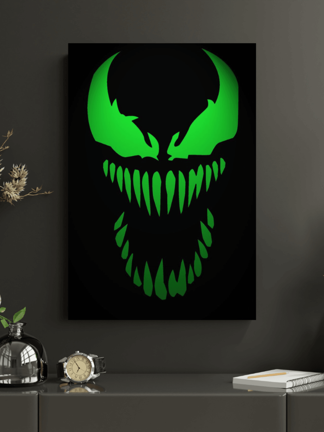 featuring a bold, menacing green grin that oozes edgy sophistication. A perfect statement piece for modern, moody spaces.