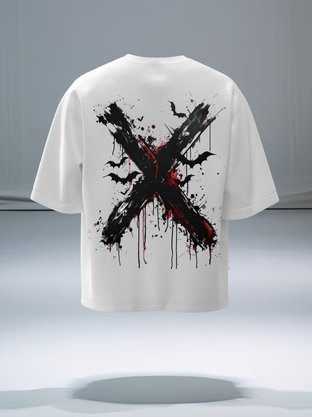 Featuring a striking black and red X with flying bats on the back and a minimal front graphic, this oversized tee blends comfort with street-ready attitude. Perfect for dance, street wear fits